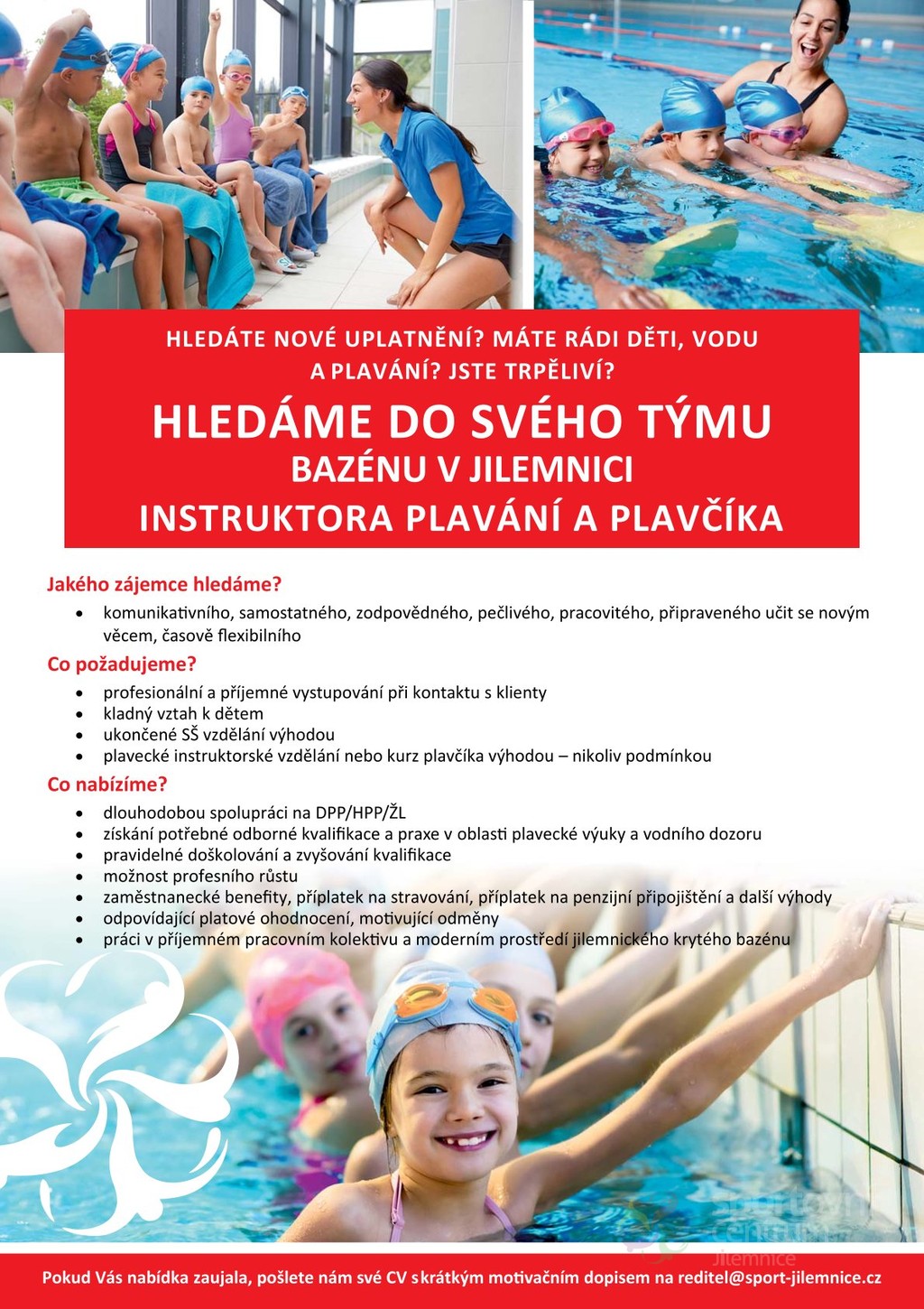 Hledáme do svého týmu instruktora plavání - plavčíka