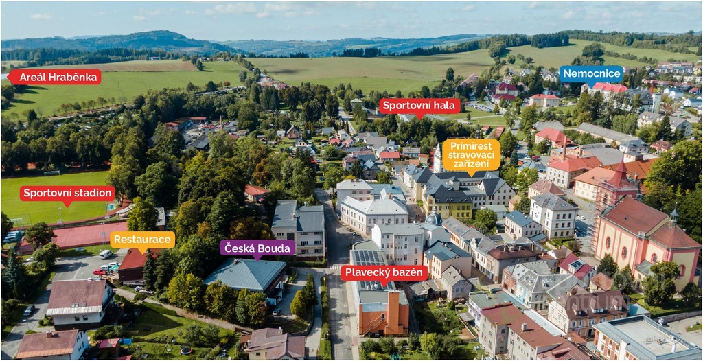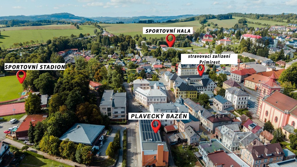 - Nacházíme se v centru města, a přesto na klidném místě – ideálním pro relaxaci i aktivní dovolenou. Přímo naproti najdete krytý plavecký bazén, saunu a solnou jeskyni. Do 200 metrů se dostanete ke sportovní hale, stadionu i Všesportovnímu areálu Hraběnka. Lokalita je perfektní jak pro turistické výlety, tak pro zimní i letní sportovní aktivity.