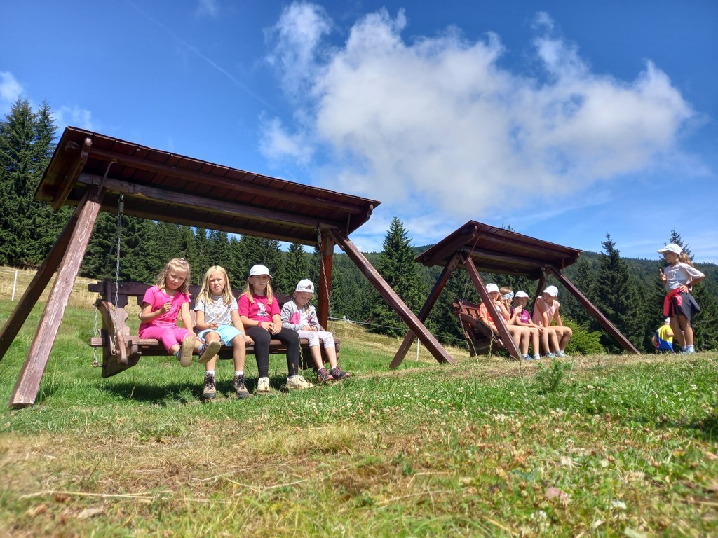 Týdenní program obsahuje plavecký výcvik, sportovní hry, výlet, soutěže a další pohybové aktivity